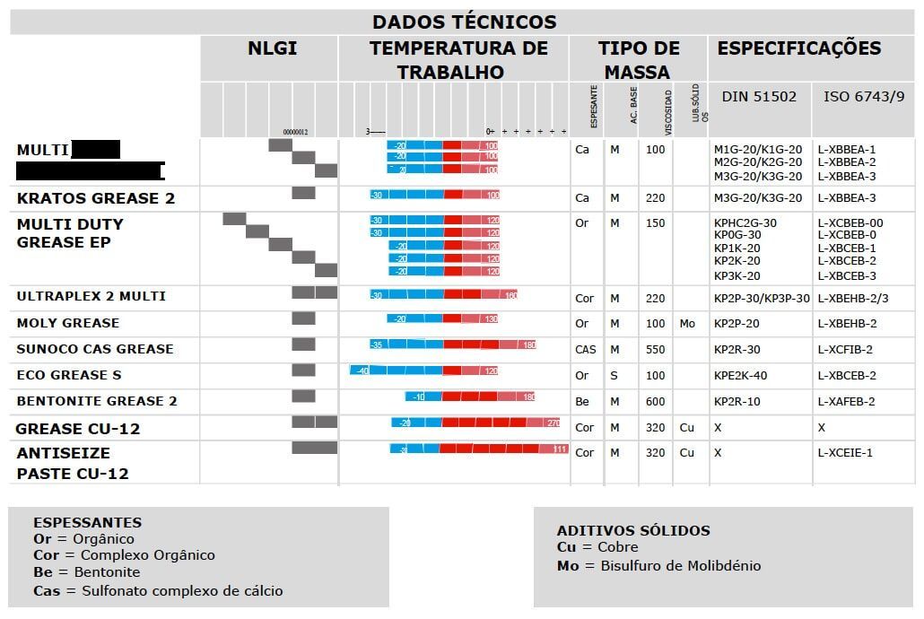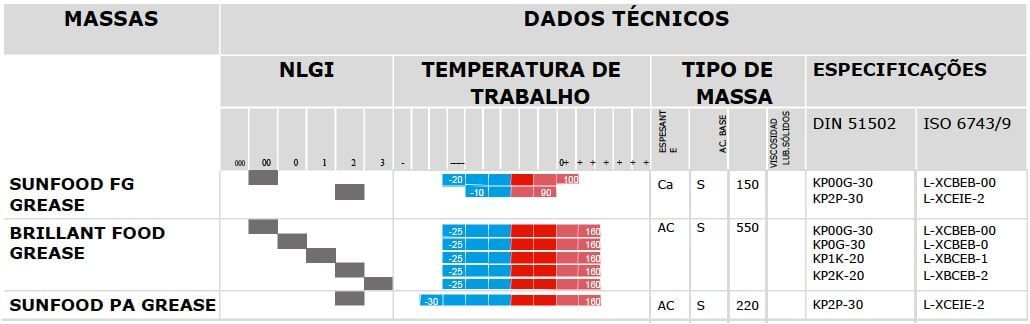 LUBRIFICANTES E MASSAS DE GRAU ALIMENTAR