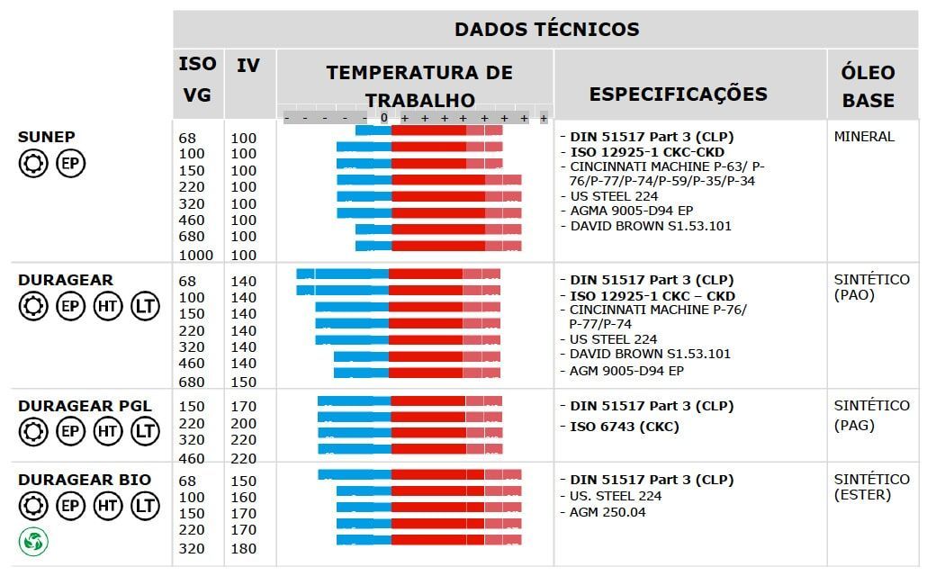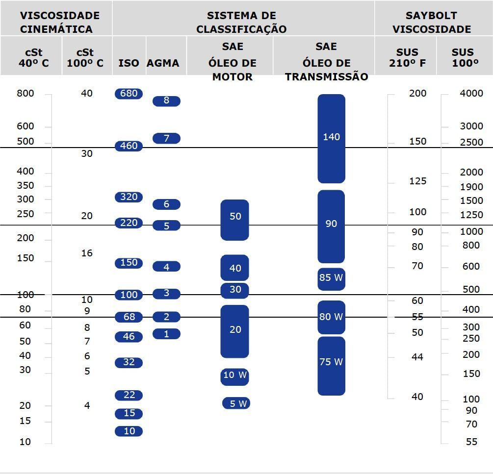 Os óleos ISO e AGMA são formulados a partir de viscosidades de 40ºC.