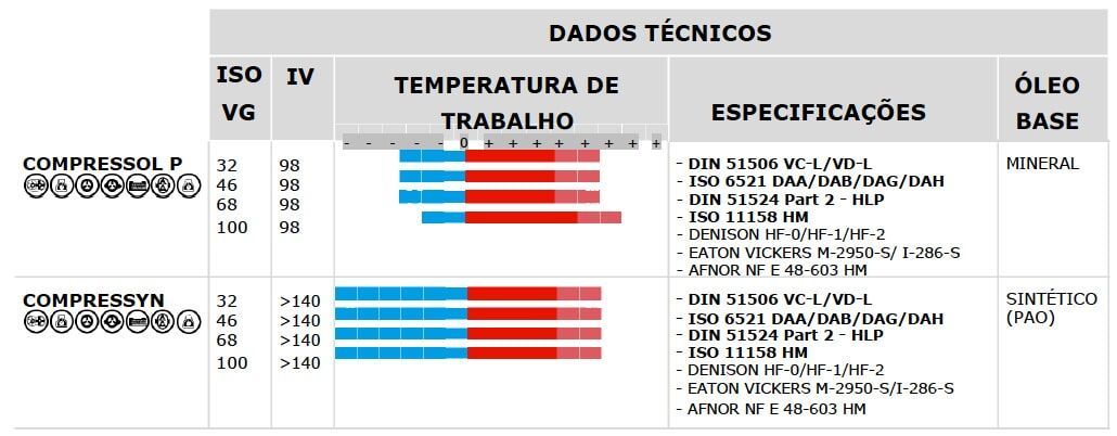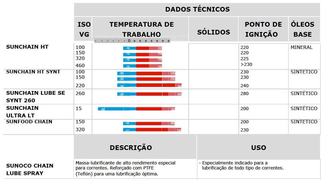 Recomenda-se sempre trabalhar abaixo do ponto de inflamação e acima do ponto de congelação que se apresenta neste catálogo. A temperatura de trabalho adequada encontra-se sempre entre 30 e 50º abaixo do ponto de inflamação representado na temperatura de trabalho e 5º acima do ponto de congelação.