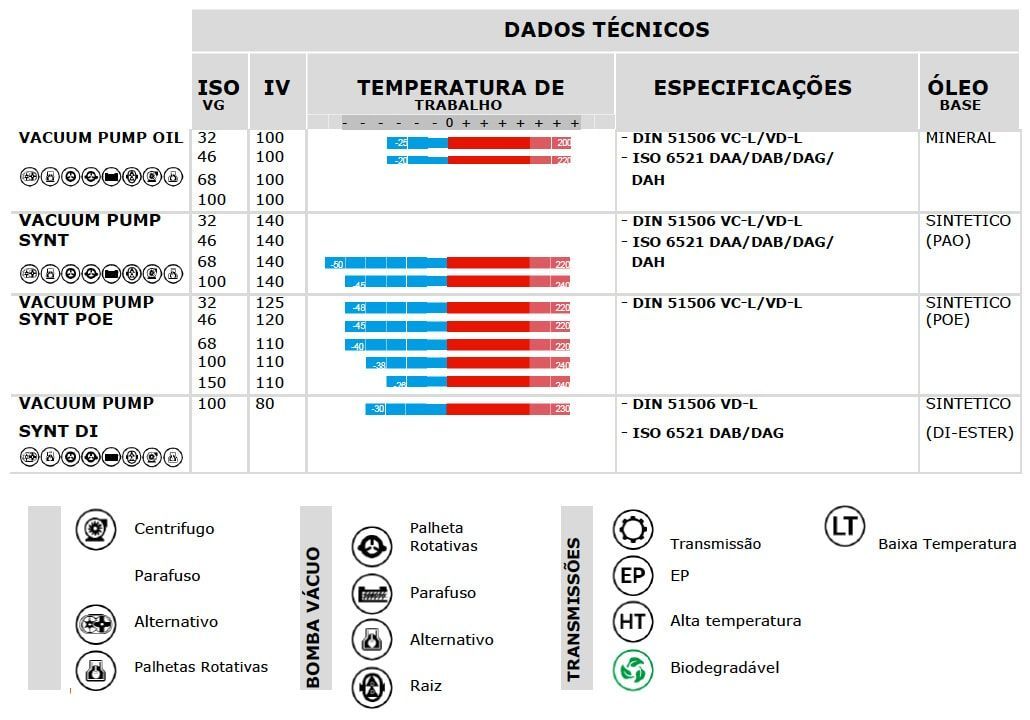 Lubrificantes formulados a partir de óleos base de alta qualidade em combinação com uma diversidade de aditivos cuidadosamente seleccionados para proporcionar um rendimento óptimo e livre de problemas em praticamente qualquer de bombas de vácuo. Dispomos de uma extensa gama de produtos onde cada um dos nossos óleos foi desenvolvido para proporcionar uma lubrificação superior sob condições de trabalho muito severas.
